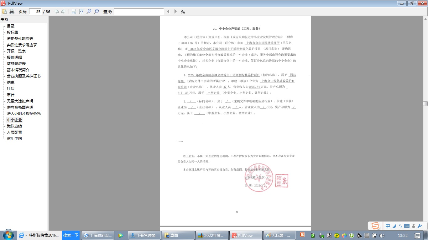 | 1 | 2022年度金山区亭枫公路等主干道两侧绿化养护项目 | 2022年度金山区亭枫公路等主干道两侧绿化养护 | 详见招标文件 | 详见招标文件 | 养护期限为12 个月(2022.1.1-2022.12.31) | 详见招标文件 |
